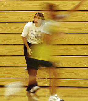 A four-year starter, Rezayat was the final remnant of the 1999 state championship. The point guard’s leadership will be missed, Gienger admits, and holes were left by the graduations of Christine Schwager, Courtney Kimball and Natalie Berry.