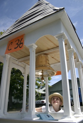 The bell and miniature steeple then rolled through the Grand Old Fourth parade the following day, to promote the campaign.