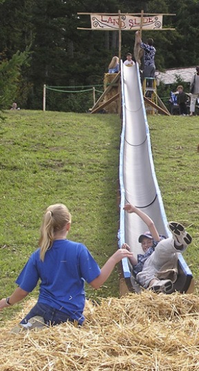 Youths frolick on the landslide at last year’s Harvest Fair (see box).