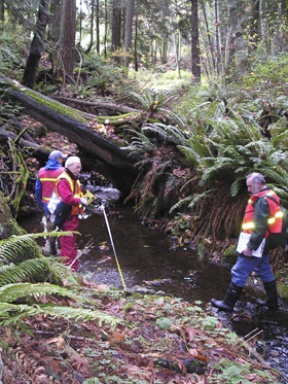 Fifteen trained volunteers walked their assigned stream for 1 mile up from the saltwater shore, checking habitat condition.