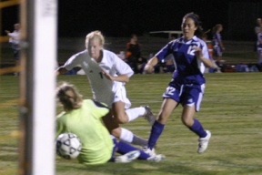 Salo brought her court hustle onto the soccer pitch Tuesday, scoring two breakaway goals in the varsity girls’ 2-0 win over North Kitsap. The close-fought game brought out a good and boisterous crowd to Memorial Stadium on the school year’s eve.