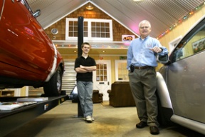 Peek’s new “garage of dreams†at his Baker Hill home is equipped with a car lift, and will be home base for the auto club he is starting on Bainbridge.