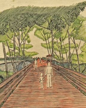 One group suggested large art fixtures above the many wells scattered across the site; another proposed a large, elevated trestle that would protrude from the hill above to the edge of the point, offering panoramic views to park-goers, and serving as an “iconic gateway monument,” said student Ion Arai.