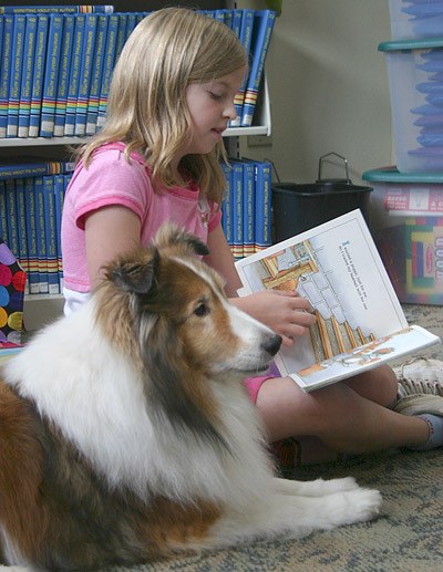 Elizabeth Hambleton, 10, read “kind of a long book,” to Faero, who seemed to grasp some of the more subtle nuances of “Big Dog and Little Dog.”