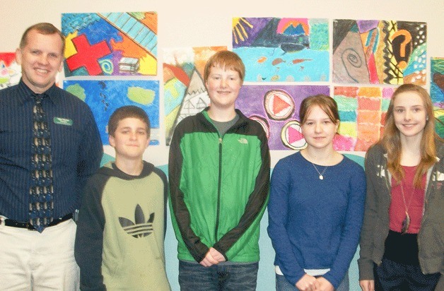 Woodward Middle School has announced its February 2012 Students of the Month. Standing with principal Mike Florian are students Thomas Crowley, Cameron Daniels, Melinda Carr and Jessica Morgan.