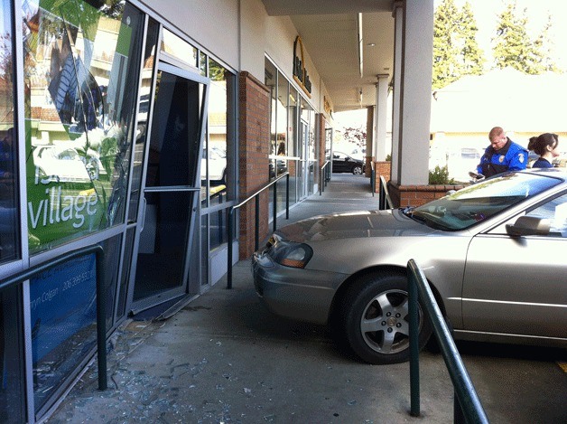Emergency units were dispatched to the Safeway parking lot at 8:07 a.m. April 23 after an Acura sedan drove through a break in the steel sidewalk railings and into the glass storefront next door to Sole Mates Shoes & Outerwear.