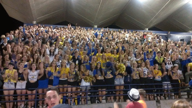 Spartan fans cheer on the team at Bainbridge Memorial Stadium for the homecoming game against Everett.