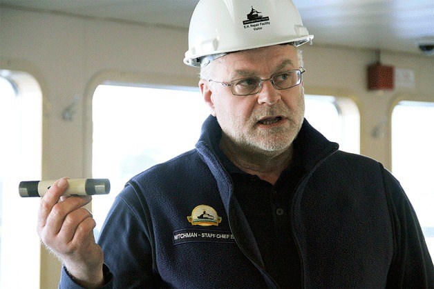 State ferry officials held a press conference aboard the Tacoma at the ferry system’s Eagle Harbor shipyard to detail the results of the investigation into the ferry’s failure.