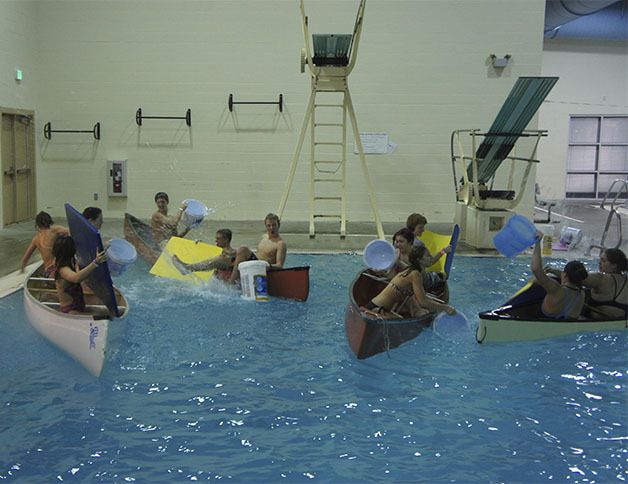 “Battleship” is a favorite for adventurous water lovers, Benishek said. Aquatics staff place canoes in the pool for two teams to square off in a battle. Armed with buckets, team members work together to sink the other team’s “ship.”