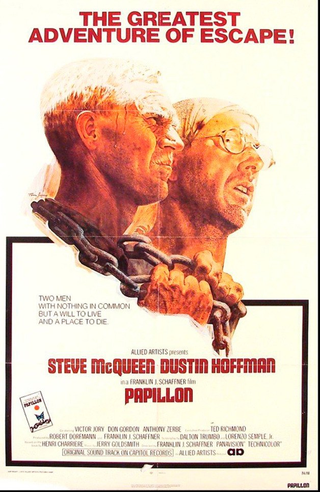 Directed by Franklin J. Schaffner, the Warner Brothers classic stars Steve McQueen and Dustin Hoffman and is an autobiography of Henri Charriere, one of the few people to successfully escape from the notorious French penal colony of Devil’s Island.