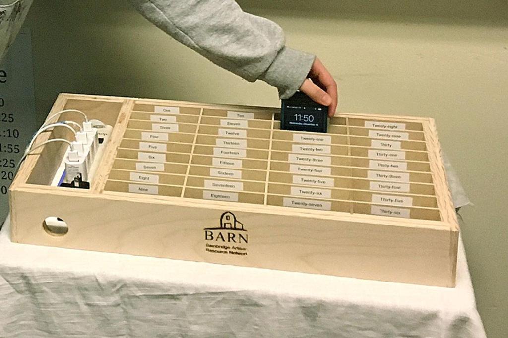 Eagle Harbor High teacher, BARN woodworker create cellphone caddy to minimize classroom distractions