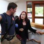 But thankfully, this “tragedy” was training, and the gun wounds weren’t even skin deep, but makeup and plastic special effects dabbed on by volunteers a few hours earlier.
