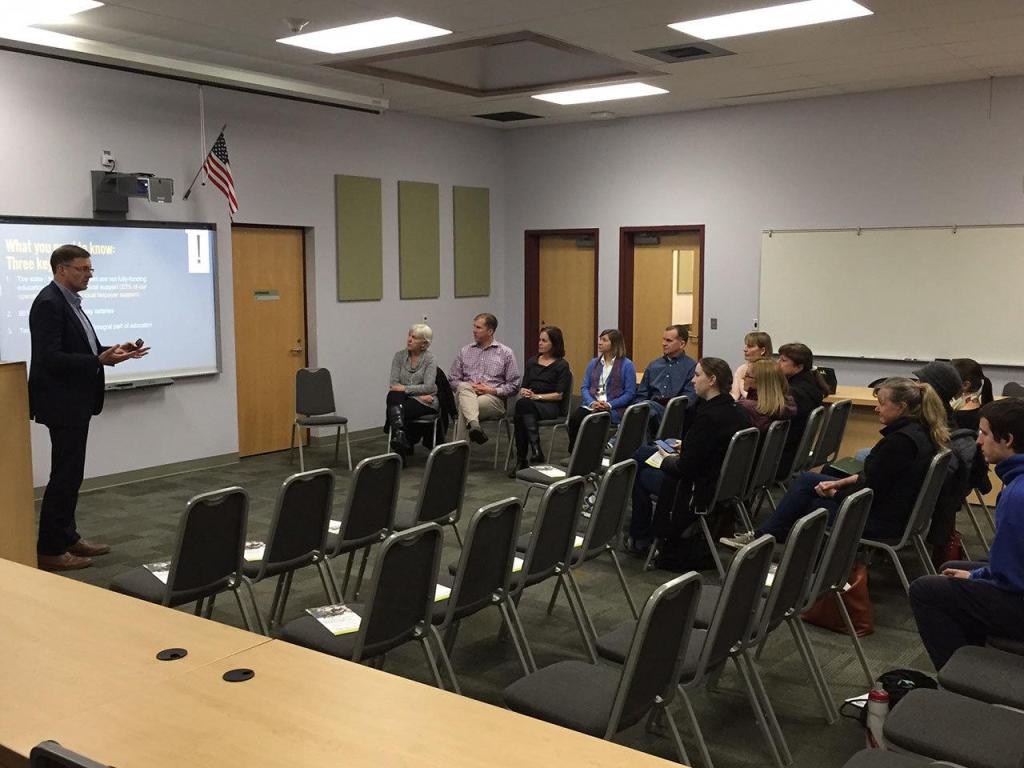 Bang-Knudsen outlined the district’s need for money by citing the lack of adequate funding for basic education coming from the state. The educational programs and operations levy — which goes toward things like teacher salaries, school programs, activities and transportation — was described by Bang-Knudsen as being “mission critical.”