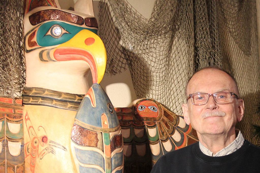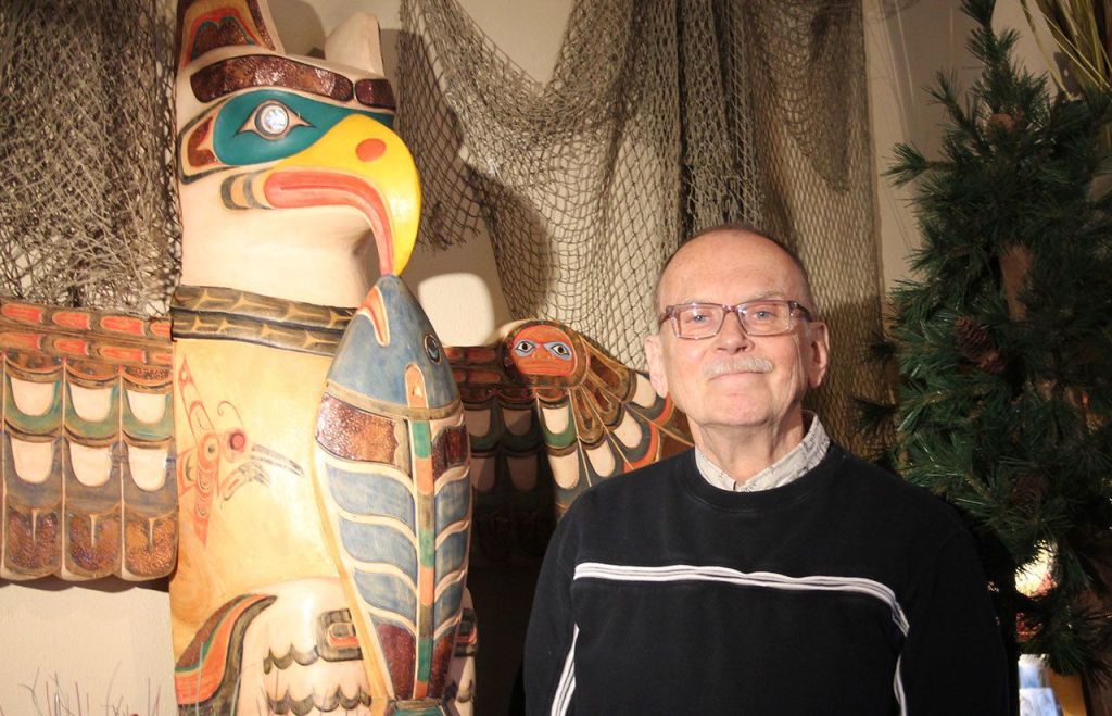 His store carries works of 50 to 60 artists, including jewelry, wood-carved bowls, pottery and clothing. There’s a section for fishermen, for birdwatchers, and artwork, including a totem pole, made by Native Americans.