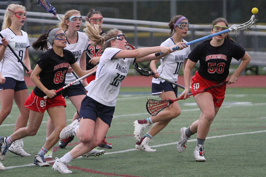 Bainbridge battled Snohomish in girls varsity lacrosse and prevailed 23-11 in a feisty second-half finish.