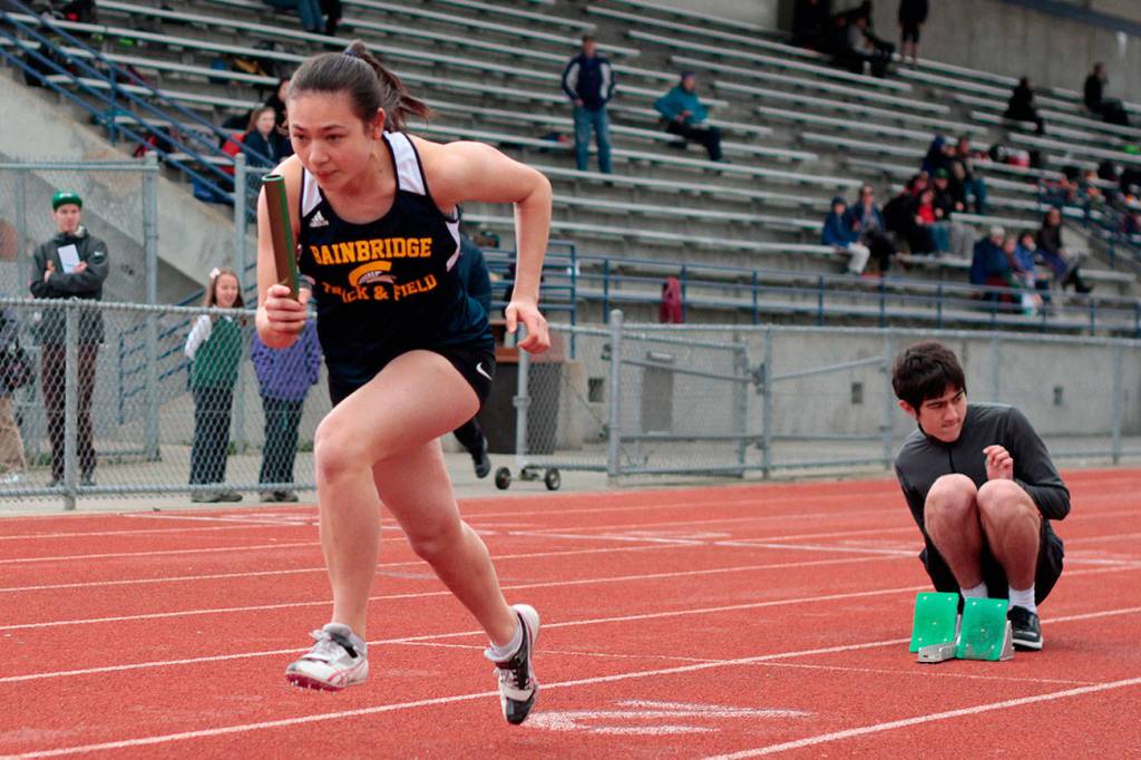The Bainbridge High track and field team hosted Lakeside and Bishop Blanchet recently at their second home-based meet, more than holding their own against the speedy Seattle schools.