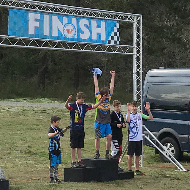 On the winners’ podium for the Gear Grinders were: Erin Thackray, third place, beginner high school girls; Thomas Schuler, second place, beginner HS boys; Mickie Wilkinson, fourth place, beginner HS boys; Kylie Turner, fifth place, seventh-grade girls; Colton Albee, third place, eighth-grade boys; and Will Donegan, fifth place, sixth-grade boys.