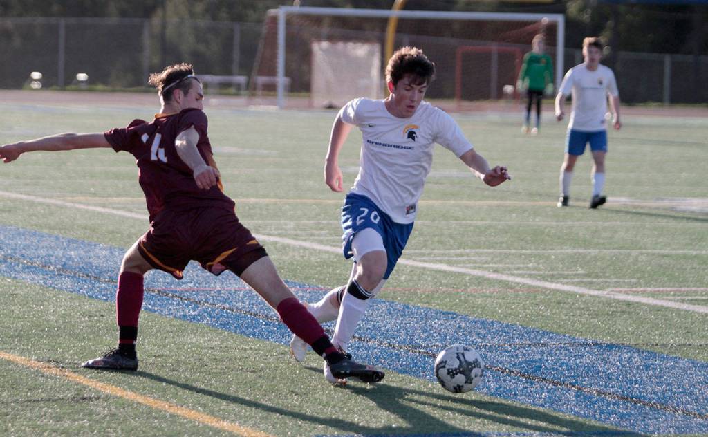 In their first match back from Spring Break, their first time all playing together on a field in 10 days, the Bainbridge High boys varsity soccer team held their own against the perennial powerhouse program of O’Dea’s Fighting Irish.