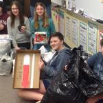 Odyssey seventh- and eighth-graders gather for a photo after they donated 441 pairs of socks to Steve Rhoades of Extreme Sobriety/Rhoades to Recovery. The students’ goal is to collect 600 pairs of socks before June 15. Rhoades brings socks and personal hygiene items to homeless on the streets of Seattle. Pictured with Rhoades (standing) is Abbie Doane, Linda Lincoln, Maggie Noel, Rhiannon Reinhardt and Phoenix Hughes.