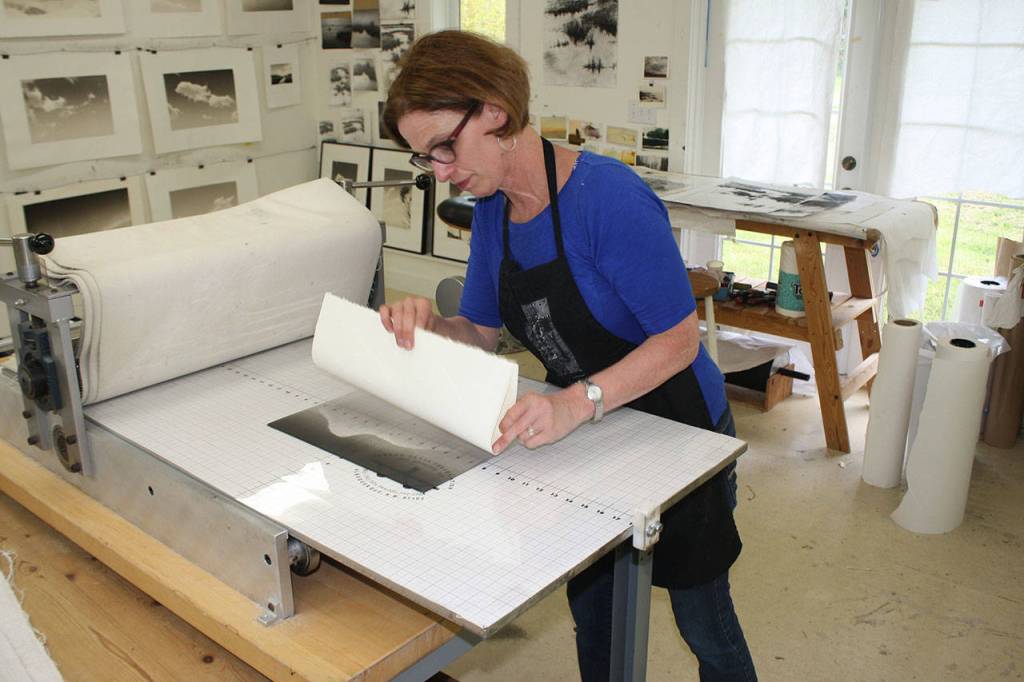 As she worked, wiping away the ink to create an image of a cloud, she ruminated some more on the meditative qualities of working in monotype.