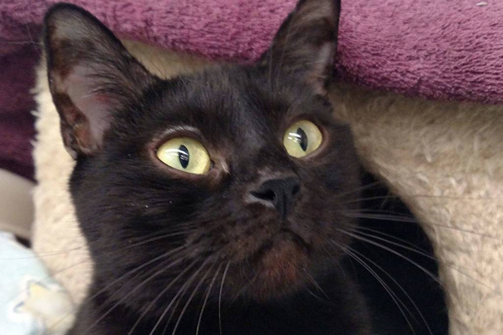 Rey is a 2-year-old, shorthaired all-black female who came in due to her owner becoming homeless.