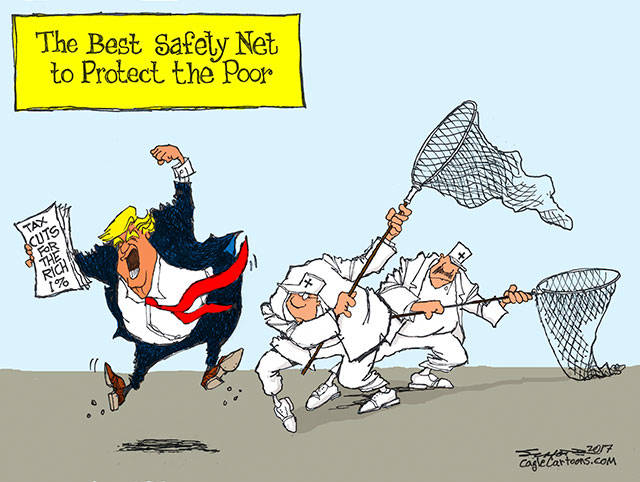 President Trump’s 23rd week in the White House was largely overshadowed by the Senate’s attempts to repeal the Affordable Care Act, leaving newspaper cartoonists little to doodle about with The Donald — except Cuba, Russia, and the phony covers of Time magazine [Fake News!] that grace the walls of his resort properties.