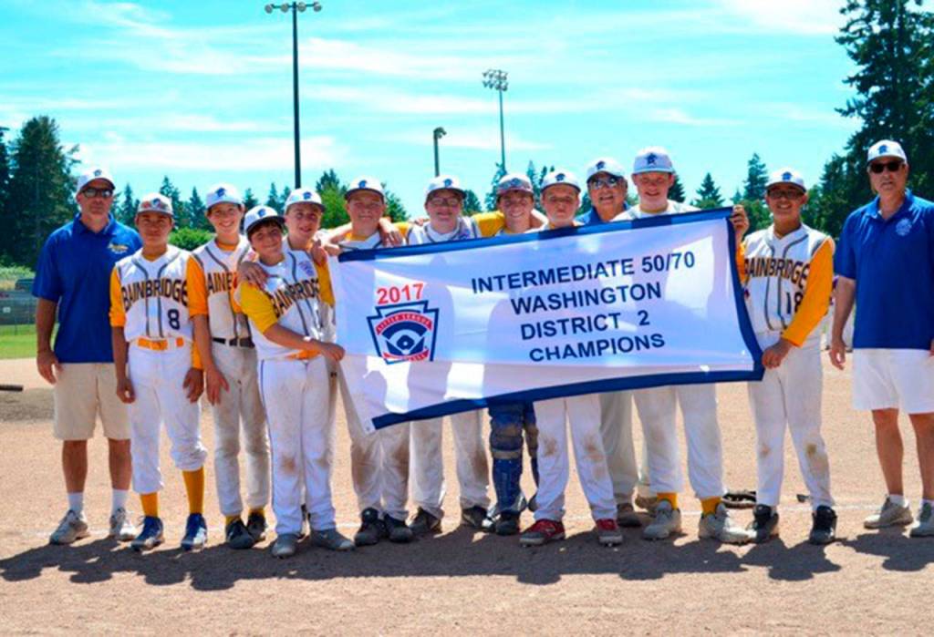 BAINBRIDGE – The Bainbridge Island Little League Intermediate baseball team recently won their second consecutive District 2 championship with a 9-1 victory over North Kitsap.