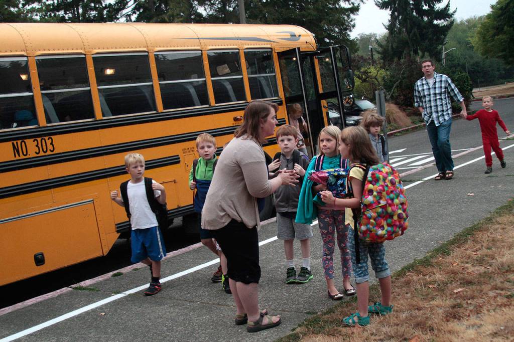 By bus, by bike, chauffeured by parents or on foot, students across Bainbridge were roused early from bed and made the trek school-ward Wednesday, Aug. 6 for the first day of classes.