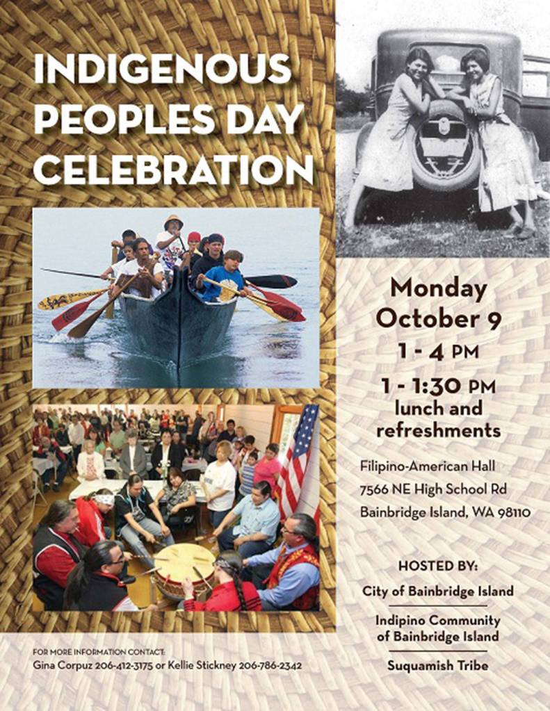 Bainbridge will celebrate Indigenous Peoples Day at the Filipino Community Hall on Monday, Oct. 9.