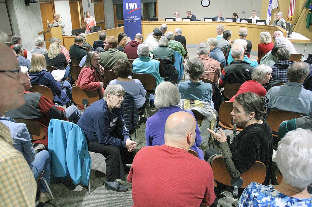 The forum, hosted by the League of Women Voters of Kitsap, drew a capacity crowd to city hall.