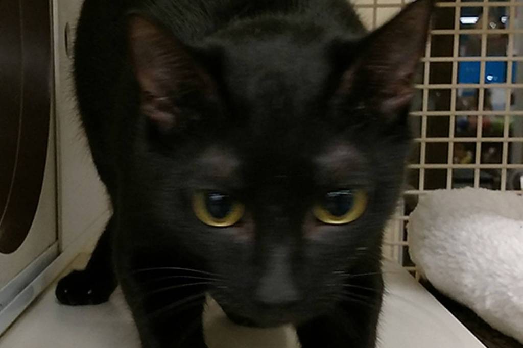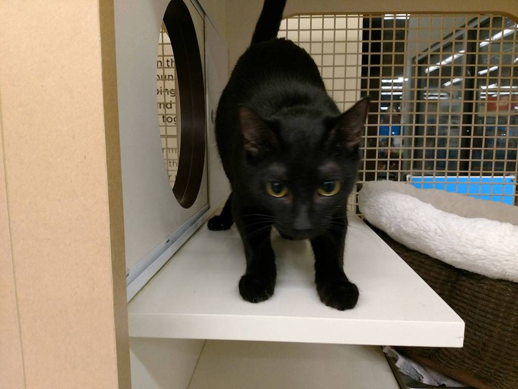 Tidbit is a 1-year-old petite sleek black female who came in to PAWS due to her owners having too many animals.