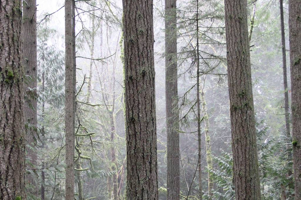 A misty morning is punctuated by a few rain sprinkles Sunday in the Grand Forest.