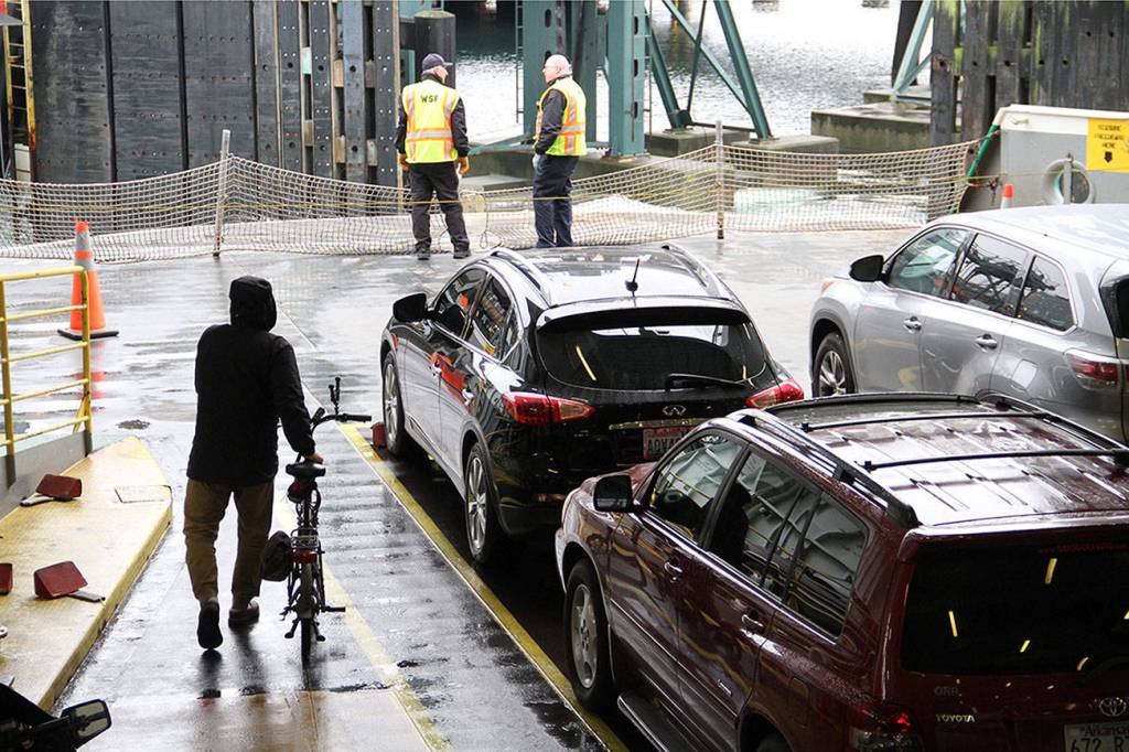 The Bainbridge ferry approaches Colman Dock in Seattle Sunday morning.
