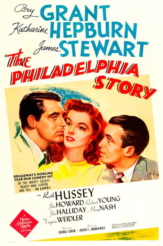 Starring Cary Grant, Katharine Hepburn, James Stewart and featuring Ruth Hussey, and based on the Broadway play of the same name by Philip Barry, the film is about a socialite whose wedding plans are complicated by the simultaneous arrival of her ex-husband and a tabloid magazine journalist.