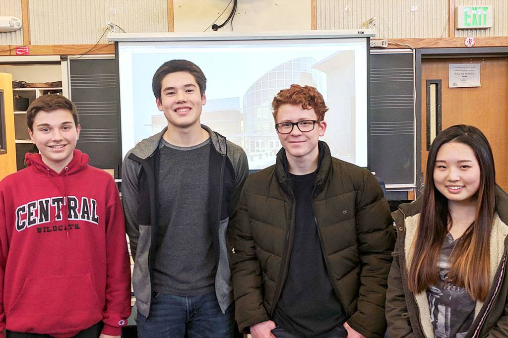 Bainbridge High’s musician winners at the district competition gather for a photo. Pictured from left are Nicolas Lofgren, Matthew McCann, Henry Brown and Sarah Jung. Megan Rideout-Redeker is not pictured. (Photo courtesy of Chris Thomas)