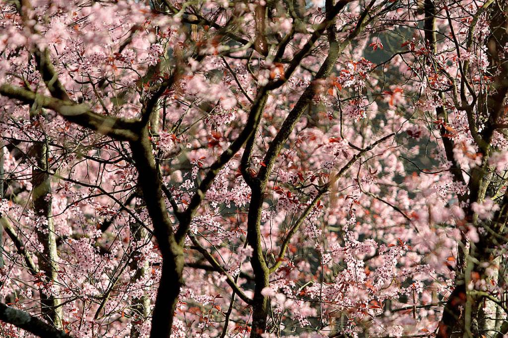 Saturday’s weather on Bainbridge Island turned out to be surprisingly sunny after a bit of rain in the morning; cherry blossoms soak up some of the sun along High School Road.