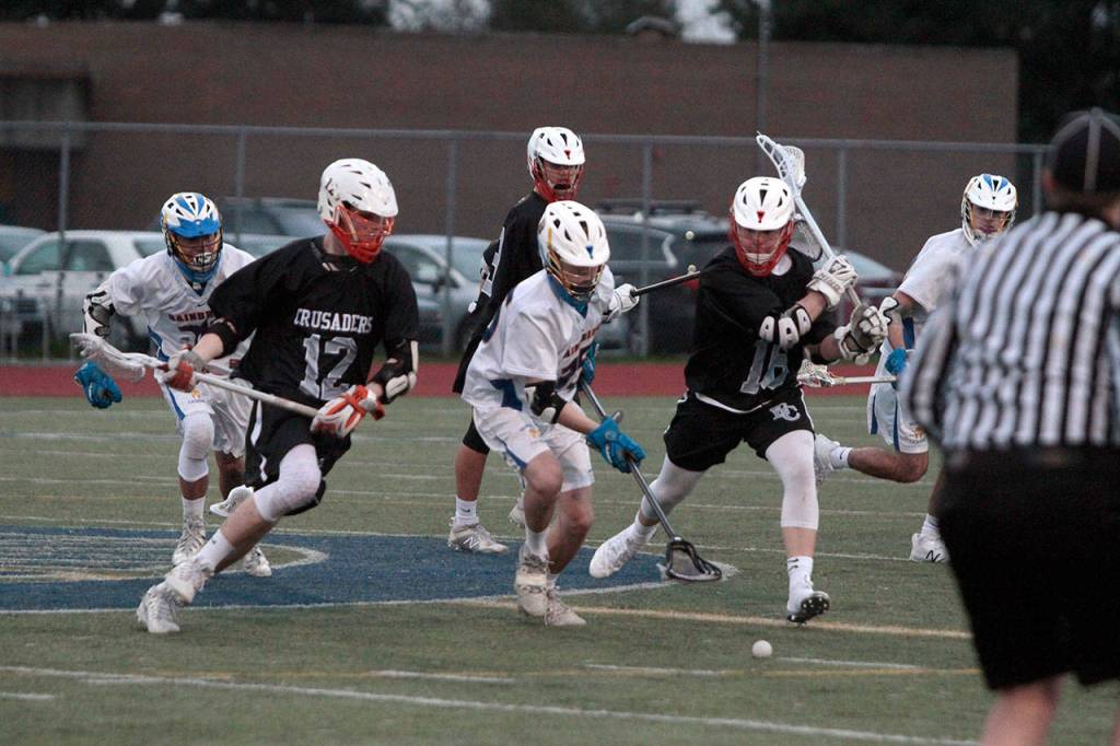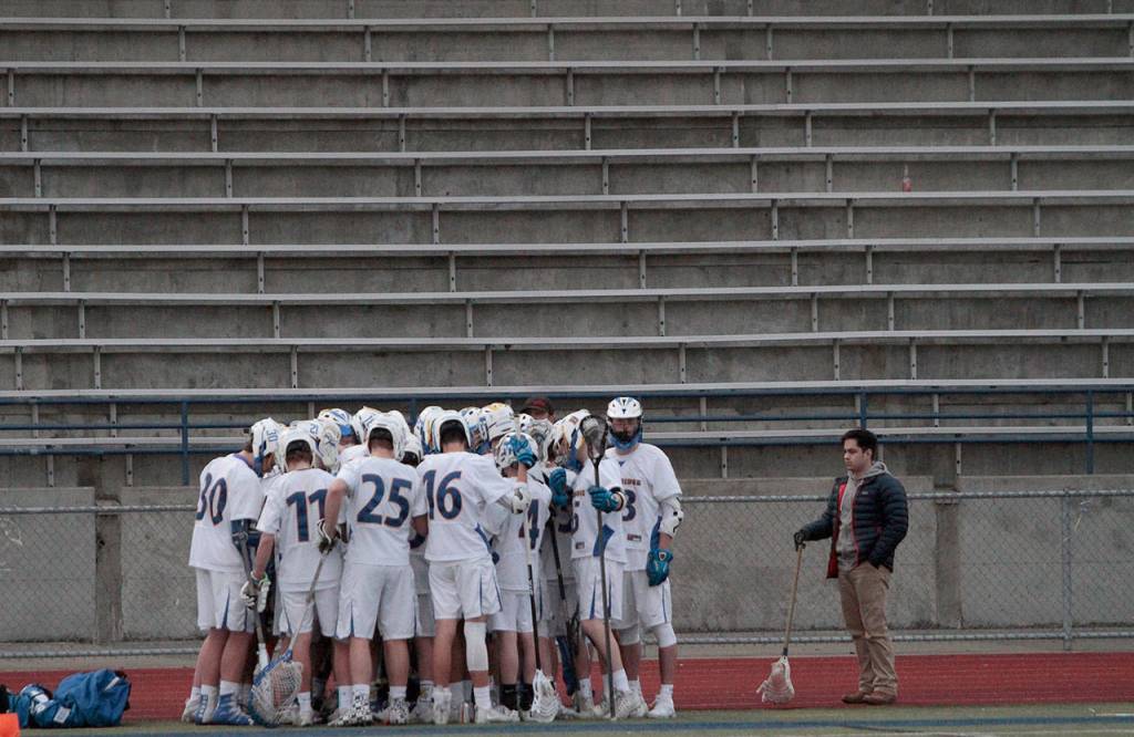 First, the Bainbridge High varsity boys lacrosse team sunk O’Dea’s Irish 9-8. Then, on Tuesday, March 27, they clipped the Eastside Catholic Crusaders 10-5 at home.