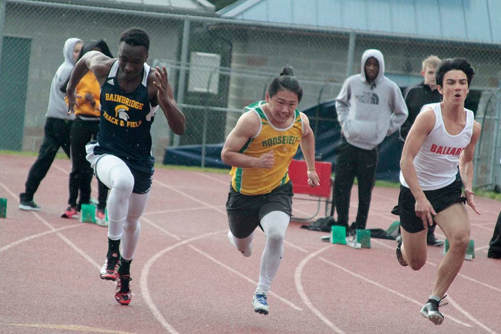 Hosting student athletes from Ballard and Roosevelt high schools, the Bainbridge High track and team found themselves outnumbered but not outdone in their first home meet of the year Thursday, March 22.