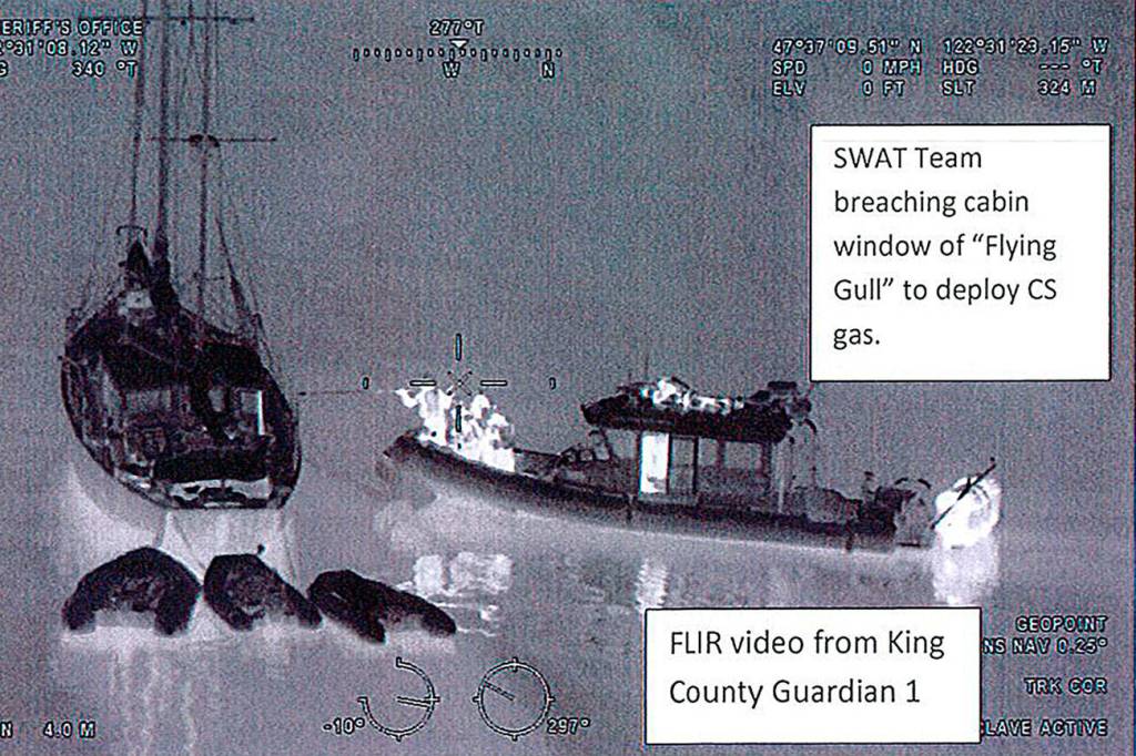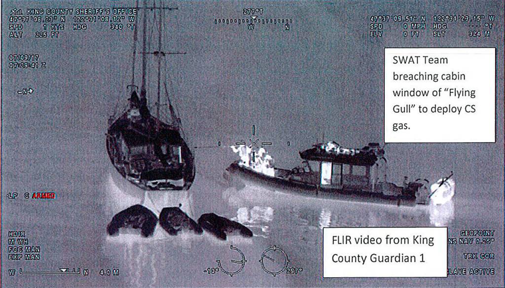 It wasn’t until nearly an hour later that a SWAT team was called out, and the standoff came to its end early Sunday morning on July 9, with King County’s Guardian 1 helicopter hovering above, shining a spotlight onto the deck of the Flying Gull.