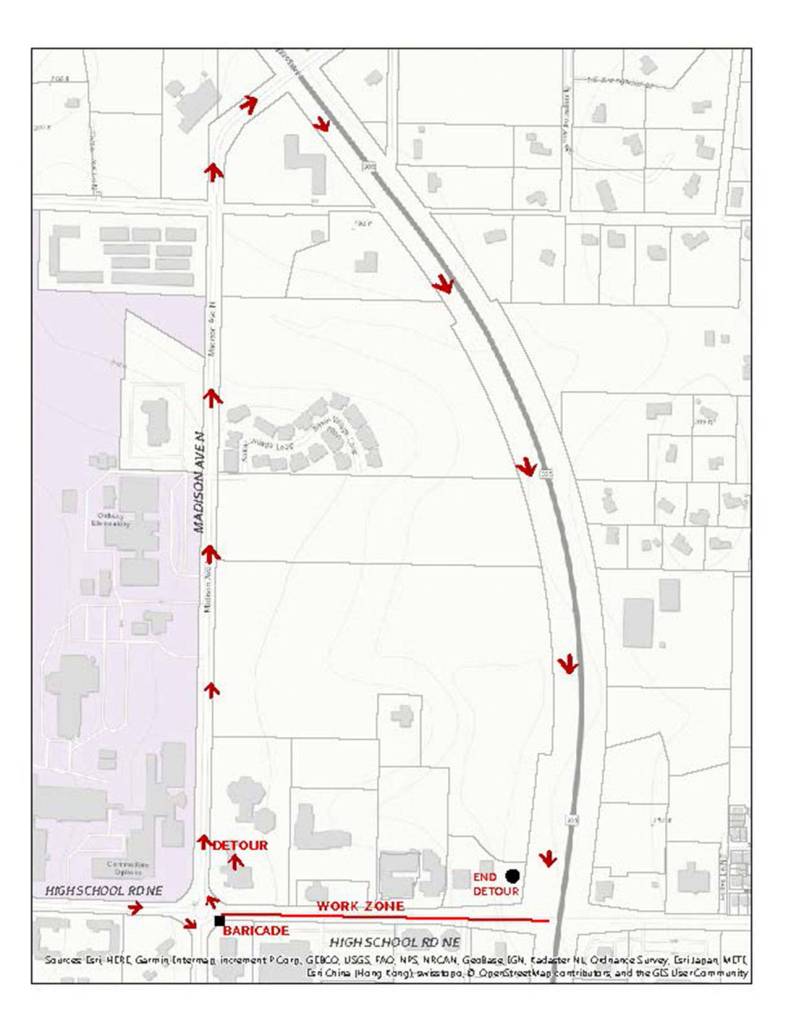 The section of High School Road to be closed will stretch from Highway 305 to the roundabout at Madison Avenue.