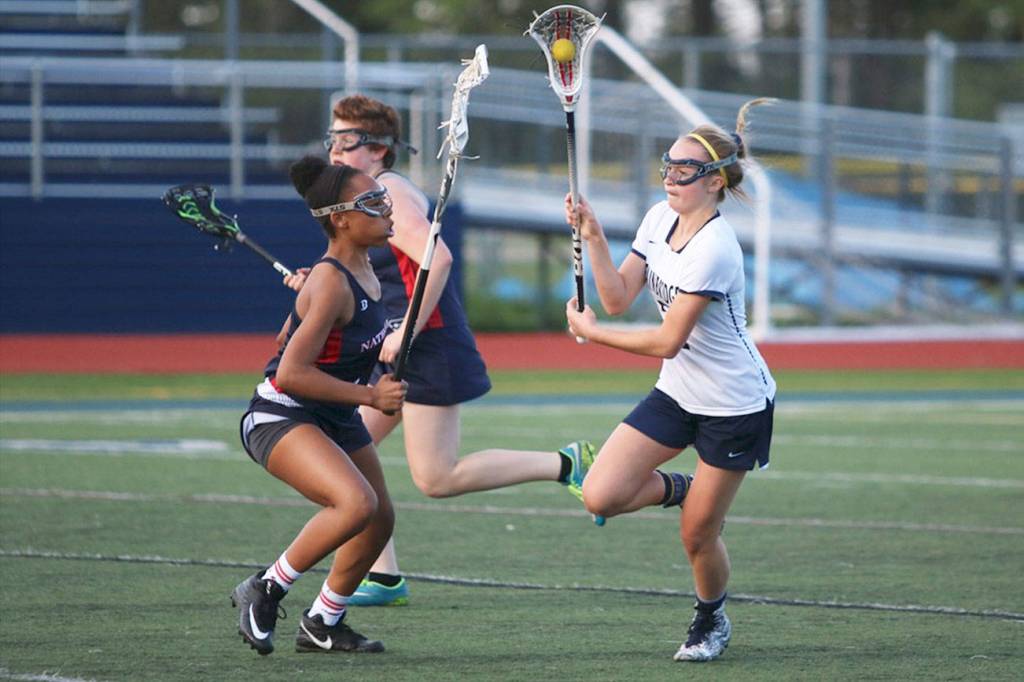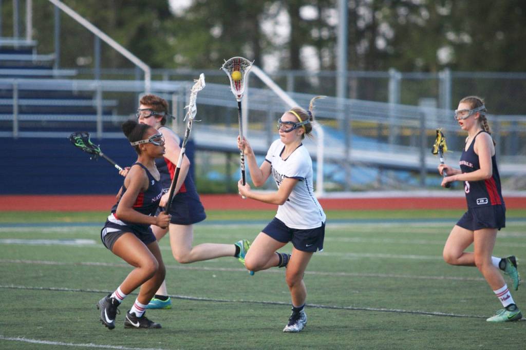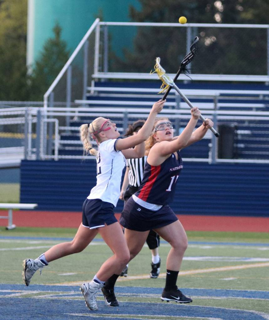 BAINBRIDGE – The Spartans took the wheels off the Raiders faster than a NASCAR pit crew as Bainbridge beat Nathan Hale 20-3 in girls varsity lacrosse Tuesday at BHS.