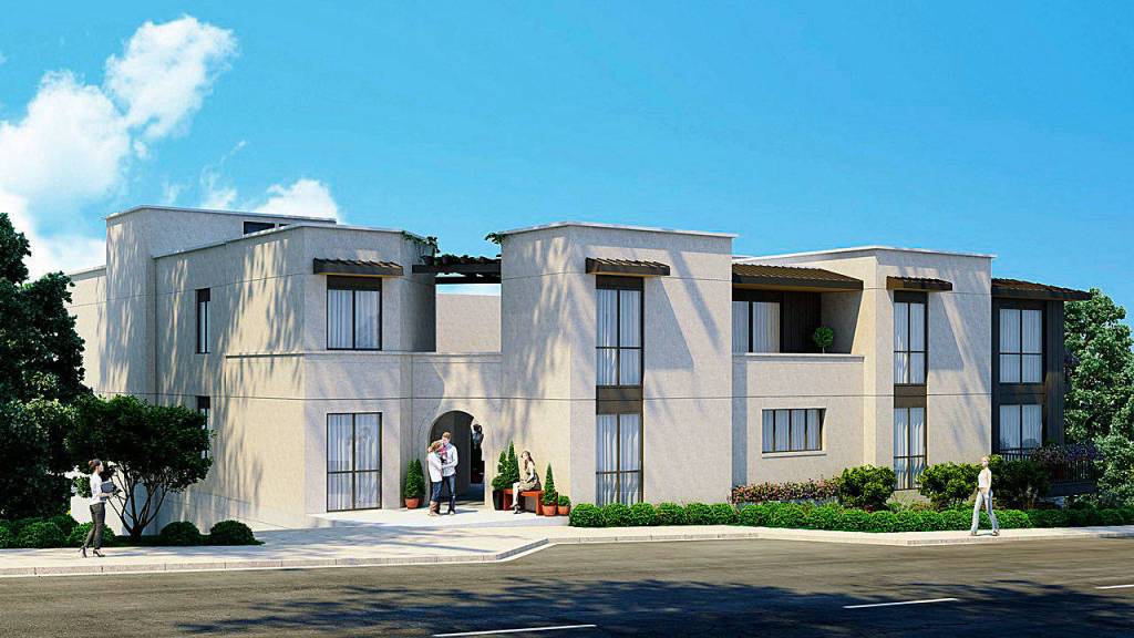 What’s now proposed is a 10-unit building with eight one-bedroom apartments and two custom townhomes set around a private, open-air landscaped courtyard. The building will also include an underground parking garage for residents.