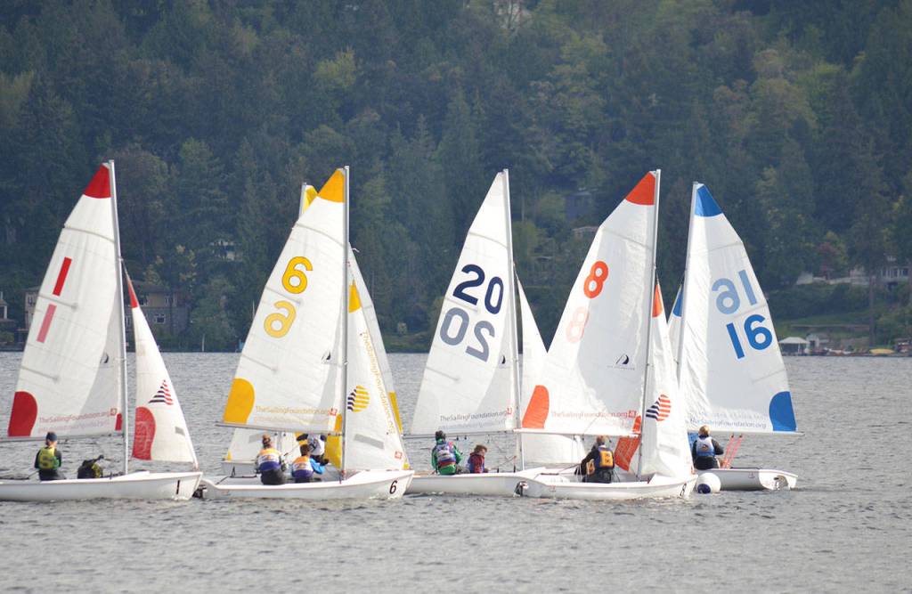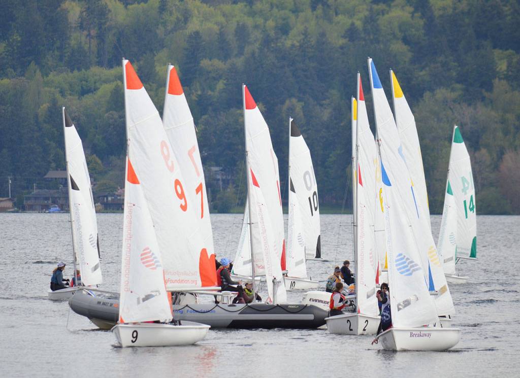 SEATTLE – Super shifty weather stymied Bainbridge High sailors as BHS finished fifth at the Northwest District of the Interscholastic Sailing Association’s Fleet Racing Championship, held recently at Sail Sand Point in Seattle.