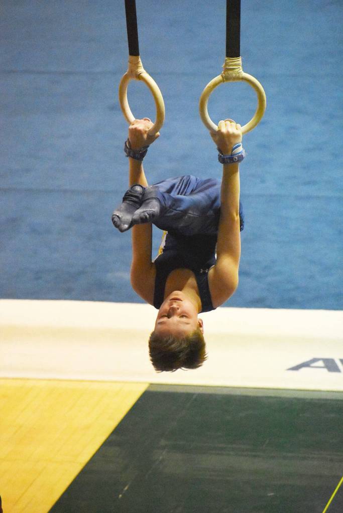 The Bainbridge Island Gymnastics Club’s men’s team sent only eight competitors of all levels and ages, to compete against teams from around the state – some teams number in the dozens of members.