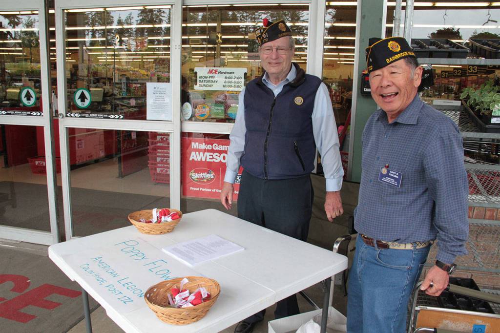 Bainbridge’s Post 172, along with its Auxiliary Unit and SAL Squadron, were accepting donations for the poppies outside of Ace, Safeway, Town & Country and the Bainbridge ferry terminal on Saturday, and the fundraiser continues on Sunday, May 20.