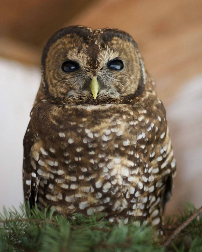 Recently, a very rare patient arrived at the shelter, a bird so notable that it once made the cover of Time Magazine. The northern spotted owl just isn’t any owl. It’s a national symbol of habitat loss, especially in our Pacific Northwest. This owl subspecies thrives only in mature forests beneath dense old growth canopies. (In Kitsap, several other species of owls glide through our trees, but our old growth forests are all but gone, our state having lost 90 percent of this important habitat due to logging.)