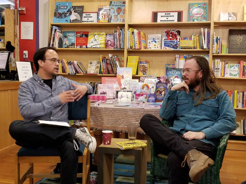It was the first of the shop’s renewed Brown Bag Lunch series, a previously long-running program of authors in discussion during lunchtime, which had ceased.