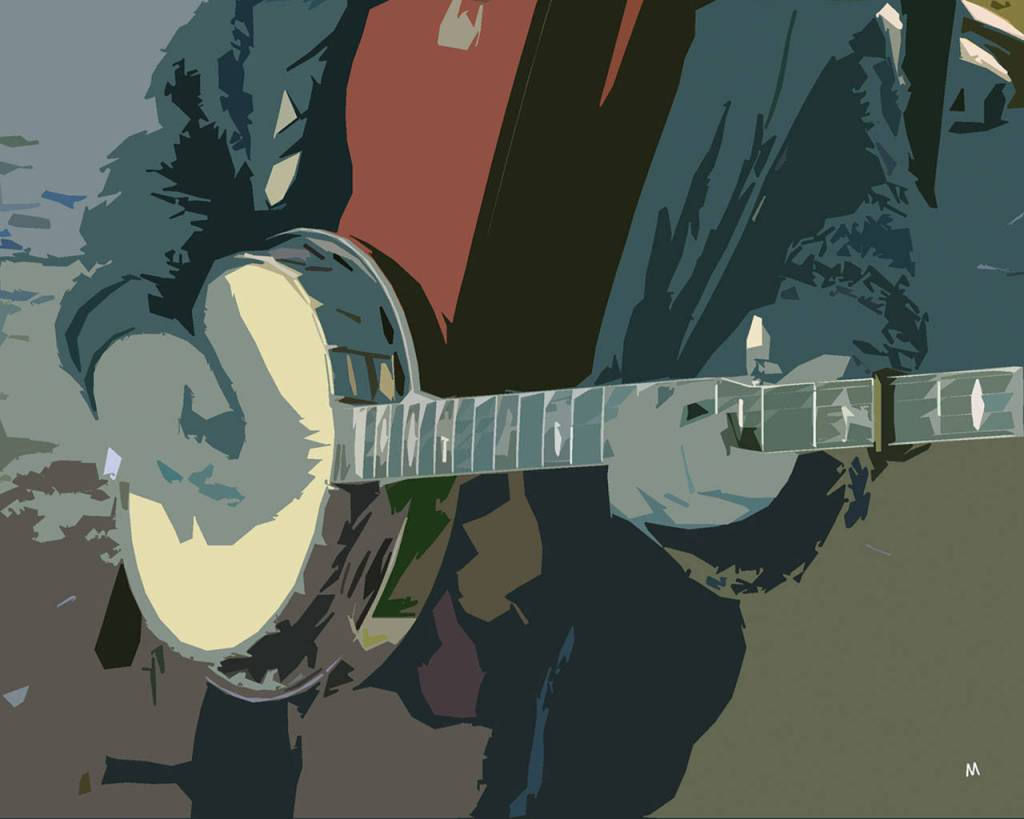 Each image evolved from a photograph the artist took of Bainbridge High marching band members, fellow musicians and various street performers in Port Townsend and Banff, Canada and were then manipulated digitally before being printed on canvas, each with a black 1-inch siding.