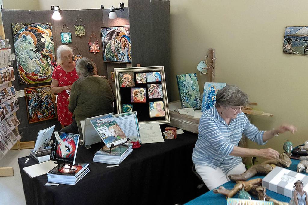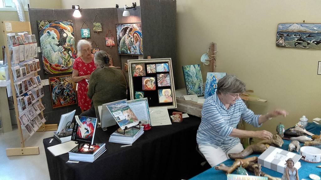Artists prepare for visitors at Rolling Clay Studio in Rolling Bay Friday, Aug. 10, the first day of the annual Bainbridge Working Studios Tour.