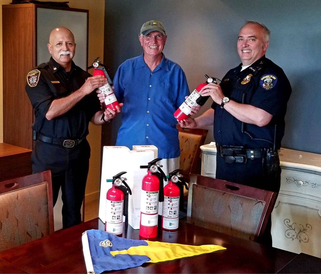The Eagle Harbor Yacht Club recently donated more than 20 fire extinguishers to the Bainbridge Island police and fire departments.